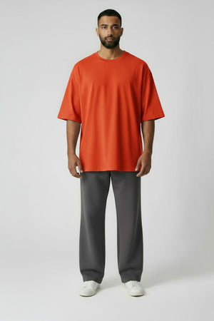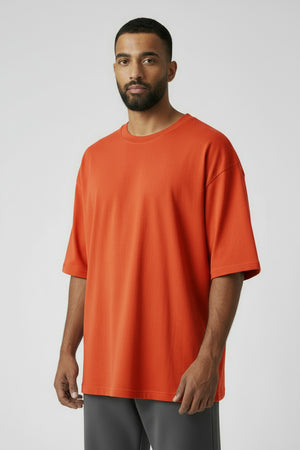 تيشيرت بلانك ثقيل 100٪ قطن - برتقالي محمر