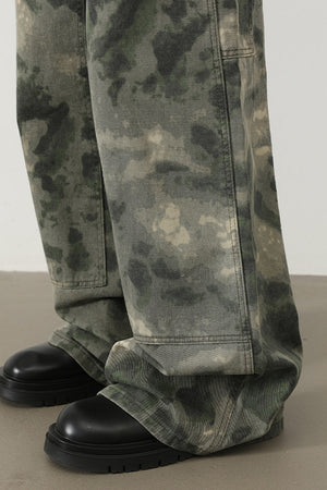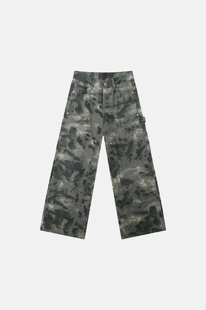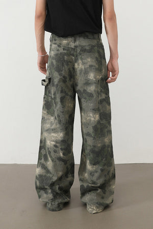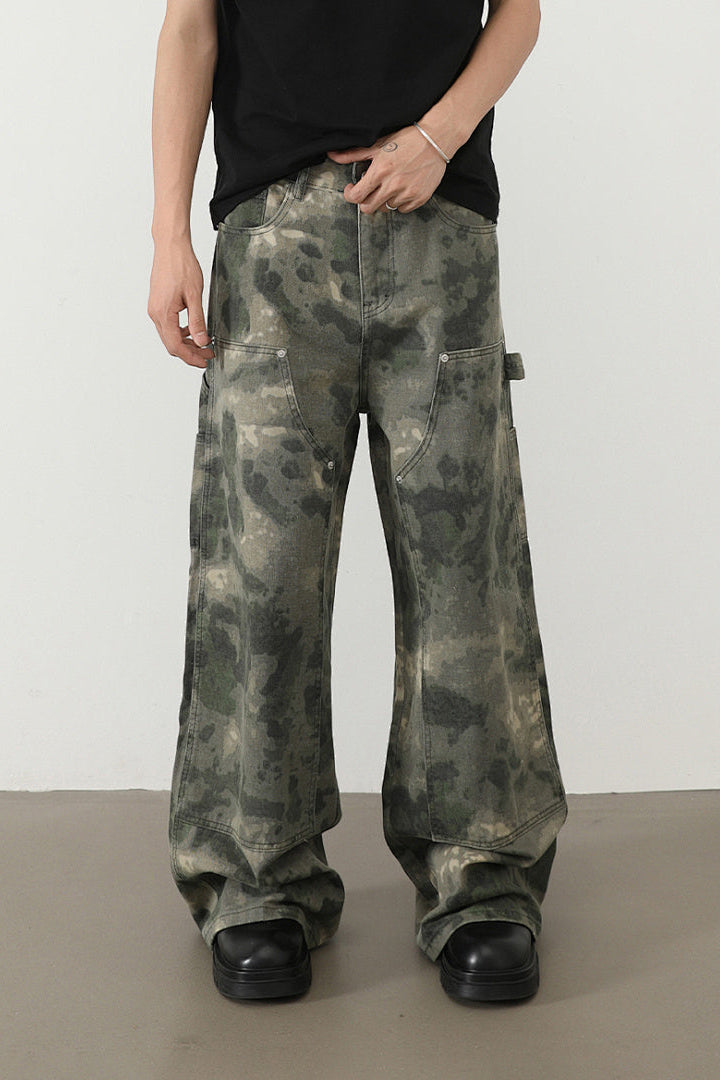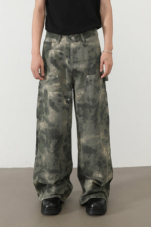 بنطال جينز رجالي واسع الساق مموه