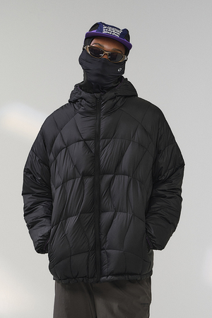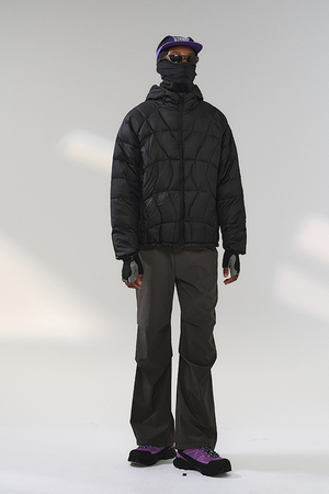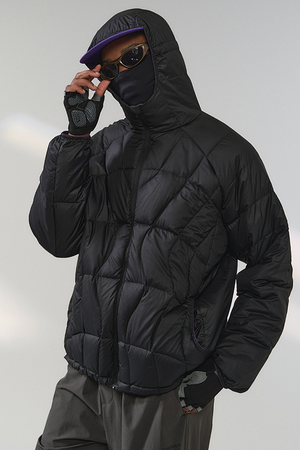 جاكيت رجالي خفيف الوزن منفوخ بغطاء للرأس - أسود