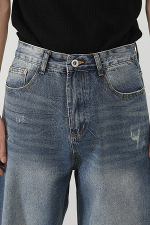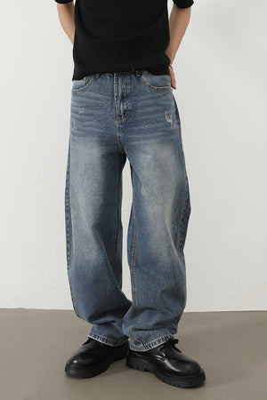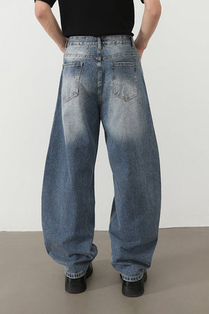 بنطلون جينز رجالي واسع بالون بتصميم فنتج[