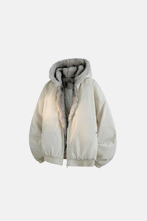 جاكيت رجالي شتوي مبطن بالفرو بغطاء للرأس - أبيض فاتح