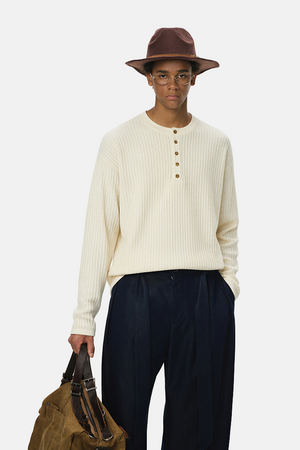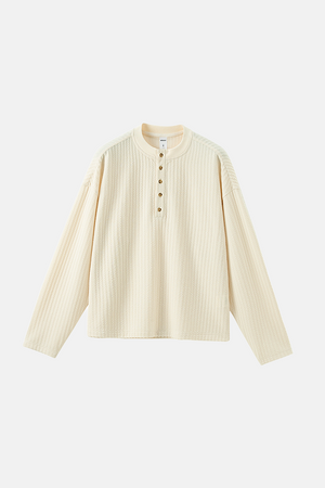 قميص هنلي رجالي بأكمام طويلة ومحبوك - أبيض فاتح